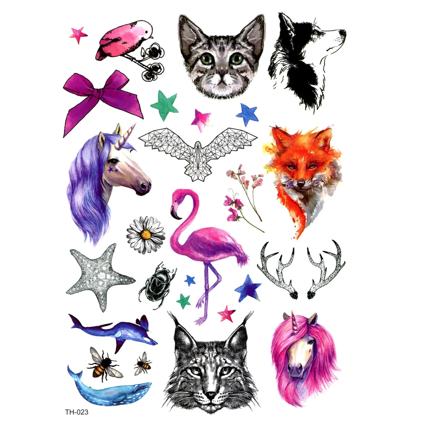 9 19cm Tl Fashion Temporary Body Art Tattoo Sticker Small Flower Unicorn Wolf Tiger Cat Chest Jewelry Decal Tattoos Design For Kid Woman Man
