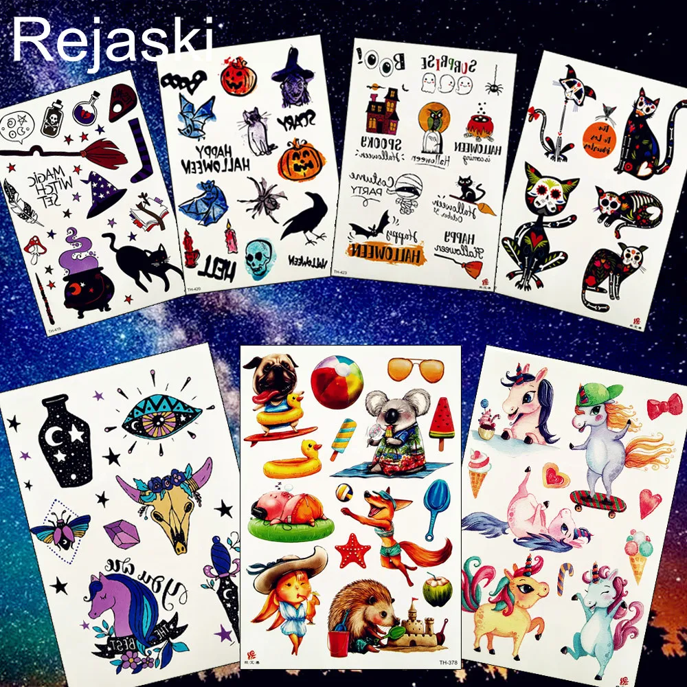 Us 0 89 Rejaski Cartoon Small Halloween Unicorn Fox Temporary Tattoo Sticker Watercolor Cat Pumpkin Tattoos Body Art Arm Fake Tatoo Kids In
