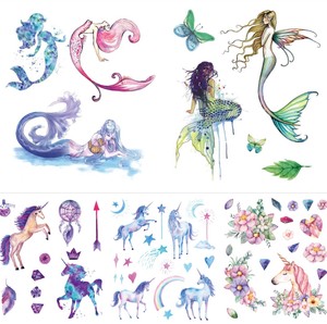 Details About Mermaid Girl And Unicorn Mini Transfer Tattoos Body Art Temporary Tattoo Sticker